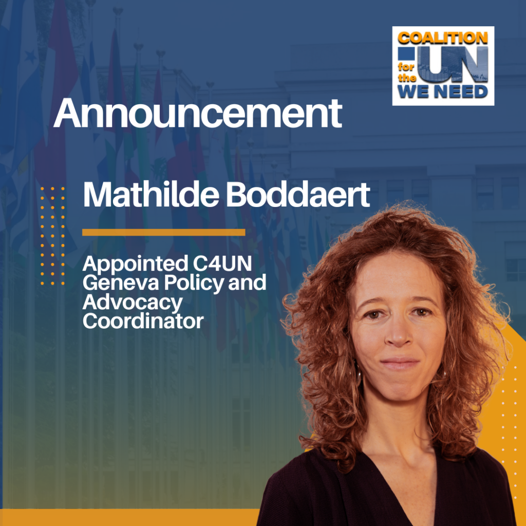 With over 18 years of experience across the UN system and civil society, C4UN is pleased to announce the appointment of Mathilde Boddaert as our first Geneva Policy and Advocacy Coordinator, strengthening our engagement in Geneva at a critical moment for multilateralism.